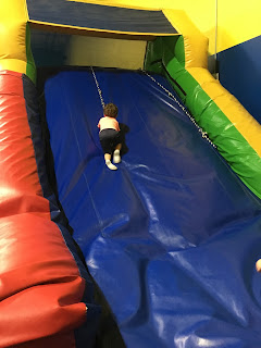 Playing at a new indoor trampoline park that also had a great little kids area. This place was awesome! It was so big and clean and tons for the boys to do. They were both a sweaty mess when we left!